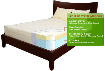 - 12" Deluxe Therapeutic Qheen Memory Foam Mattress